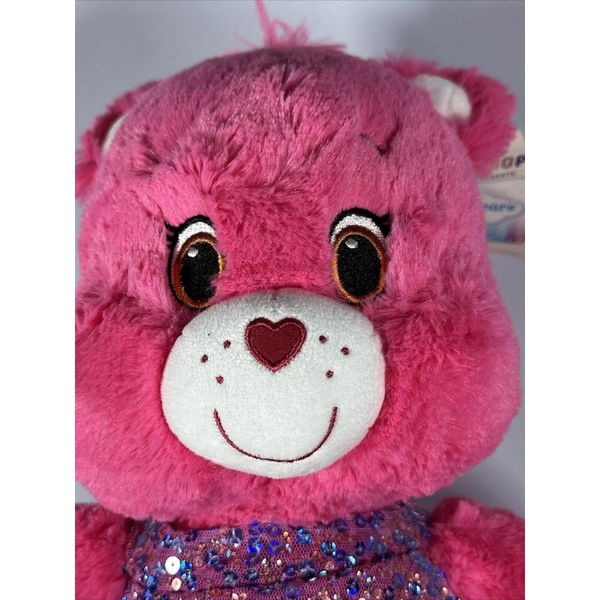 This adorable 18-inch Build-A-Bear Workshop teddy bear is a perfect addition to any Care Bears collection. With its vibrant pink color and Cheer Bear character design, this original and licensed reproduction bear is sure to bring joy to all occasions. The plush material and retired features make it a unique and sought-after item for collectors of all ages.