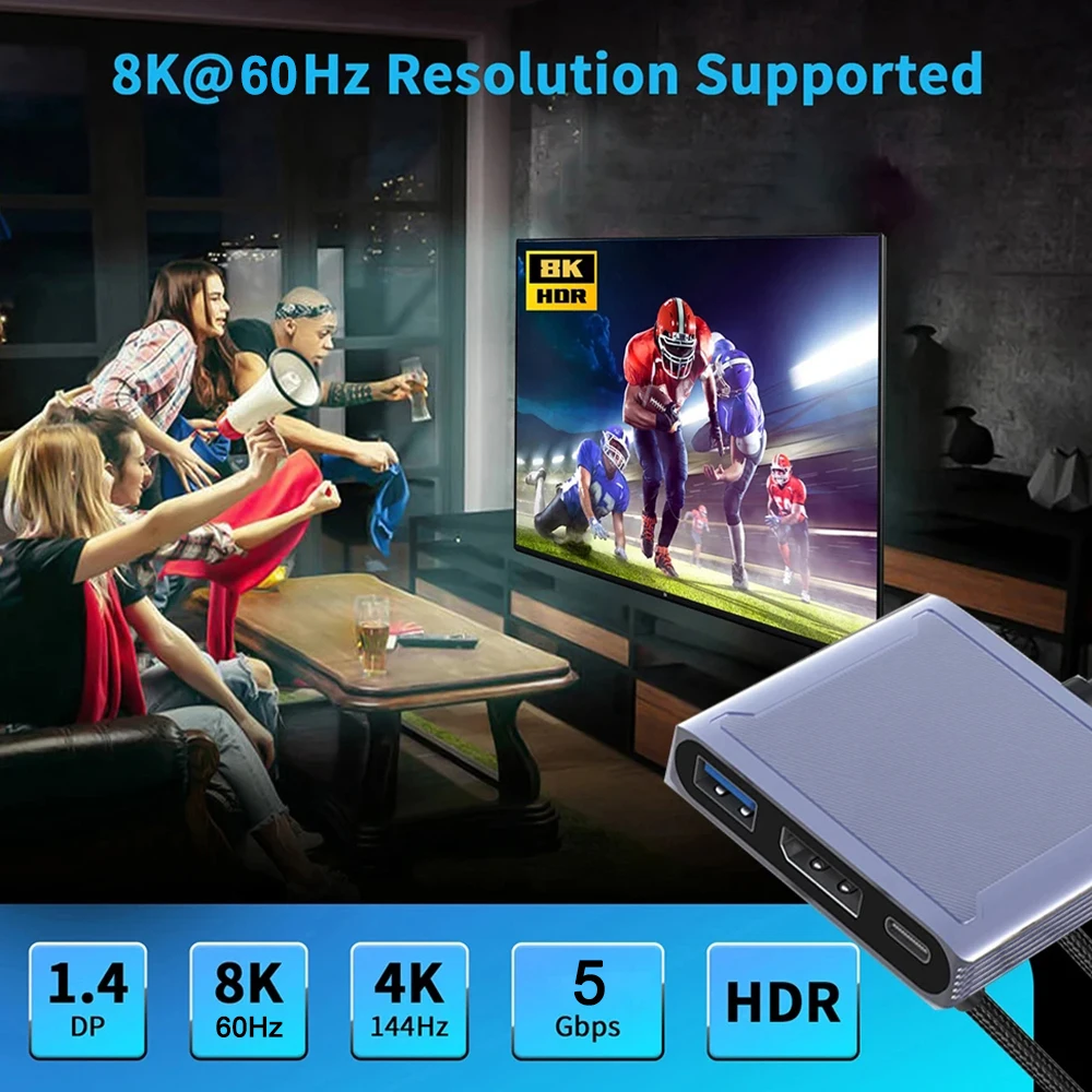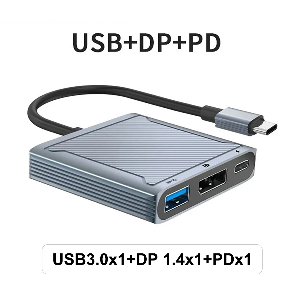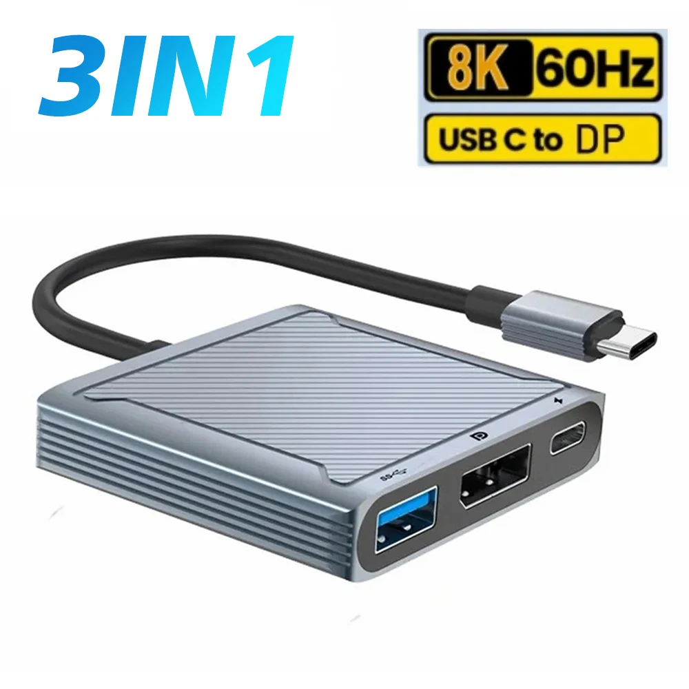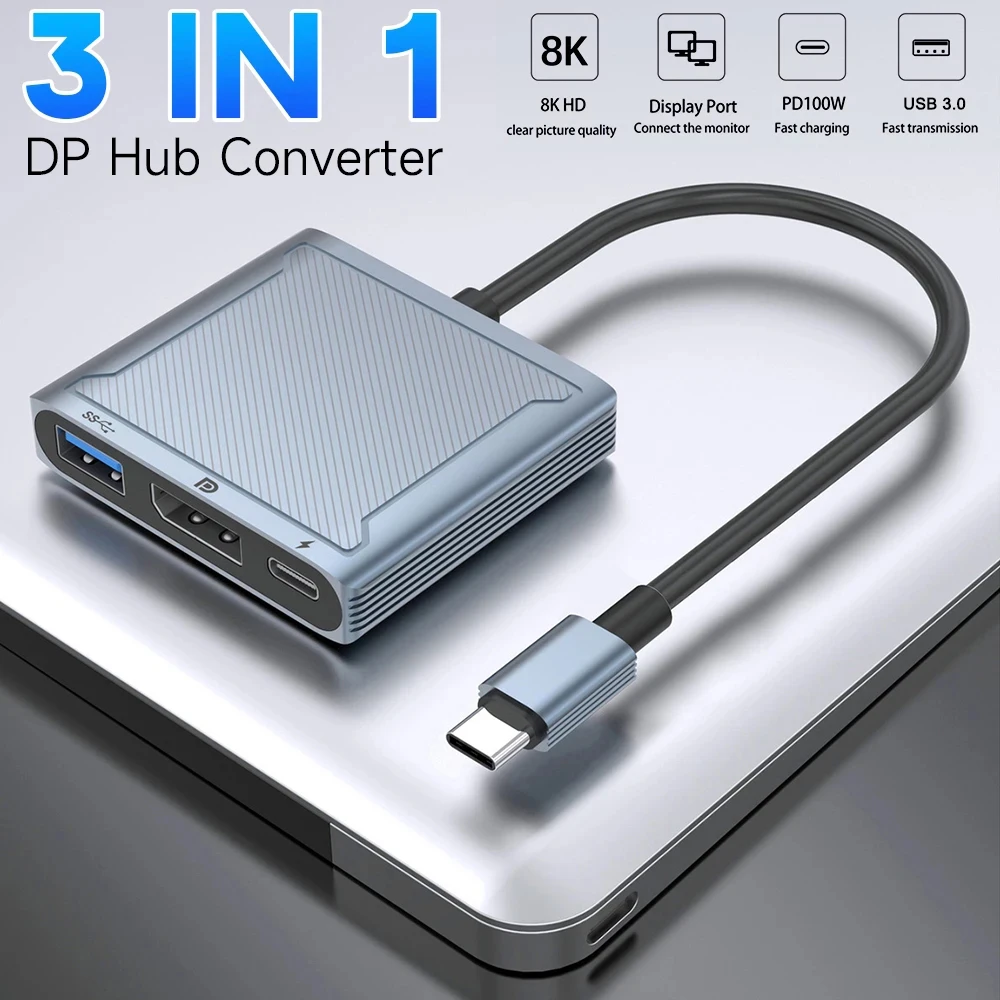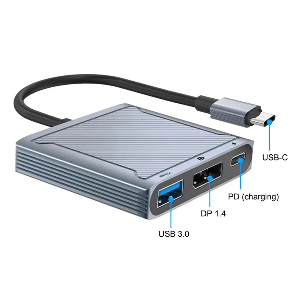 1. 3-in-1 Multi-Port USB C Hub: Expands USB Type-C (Thunderbolt3/4 compatible) port to USB 3.0 port, 8K DP output port and USB-C charging port. Three ports can work simultaneously.