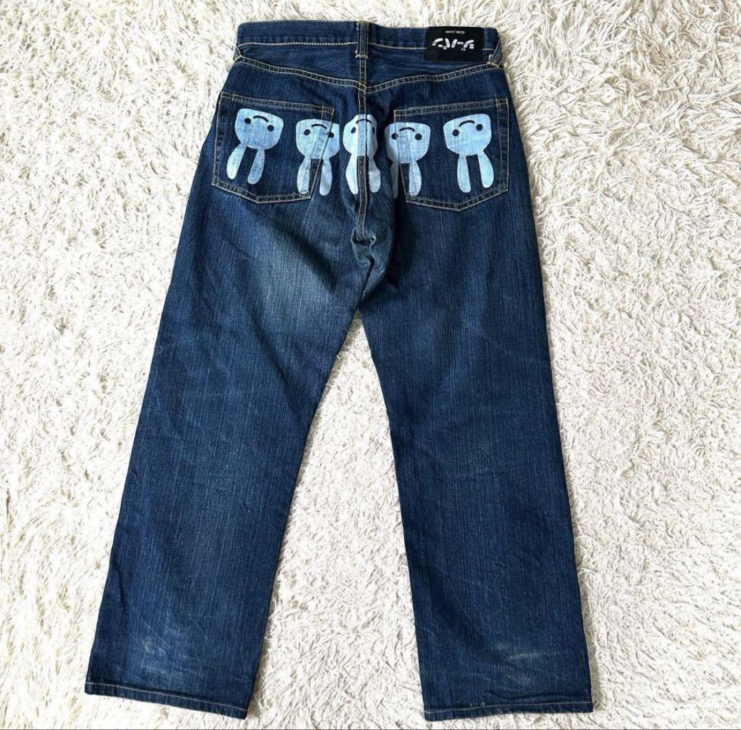 Indigo Relaxed Wide Pants Logo Button Rabbit Jeans G-pan Light Blue